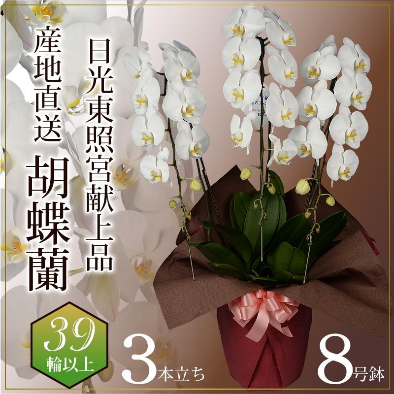 【胡蝶蘭3本立 39輪以上 8号鉢について】・栃木県下野市にある「蘭のフレンズ」から直接お届けいたします。・お花のお色は、白・赤リップ(白赤)・ピンクの3色からお
