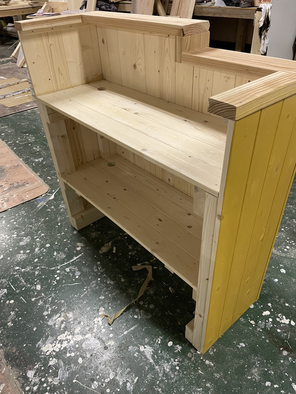 幅90✖︎高さ105✖︎奥行き38センチ。 サイズオーダー可能。 無垢板を使用しているため、環境によりヒビが入ることもあります。丁寧に作業はしていますがハンドメイドによる作品です。ご理解頂きご購入下さいませ。 また、ハンドメイドで天然木材を使用してる為、塗装の色の出方等若干の差はございます。 ハンドメイドの味とご理解下さいませ。 気になる方はトラブル防止の為、ご注文をお控えくださいませ。 #カウンター #レジ #受付 #美容 #美容室 #ネイル #ネイルサロン #オーダー #手作り #ヨガ #レジ台 #什器 #家具 #テーブル #机 #マツエク #レジ
